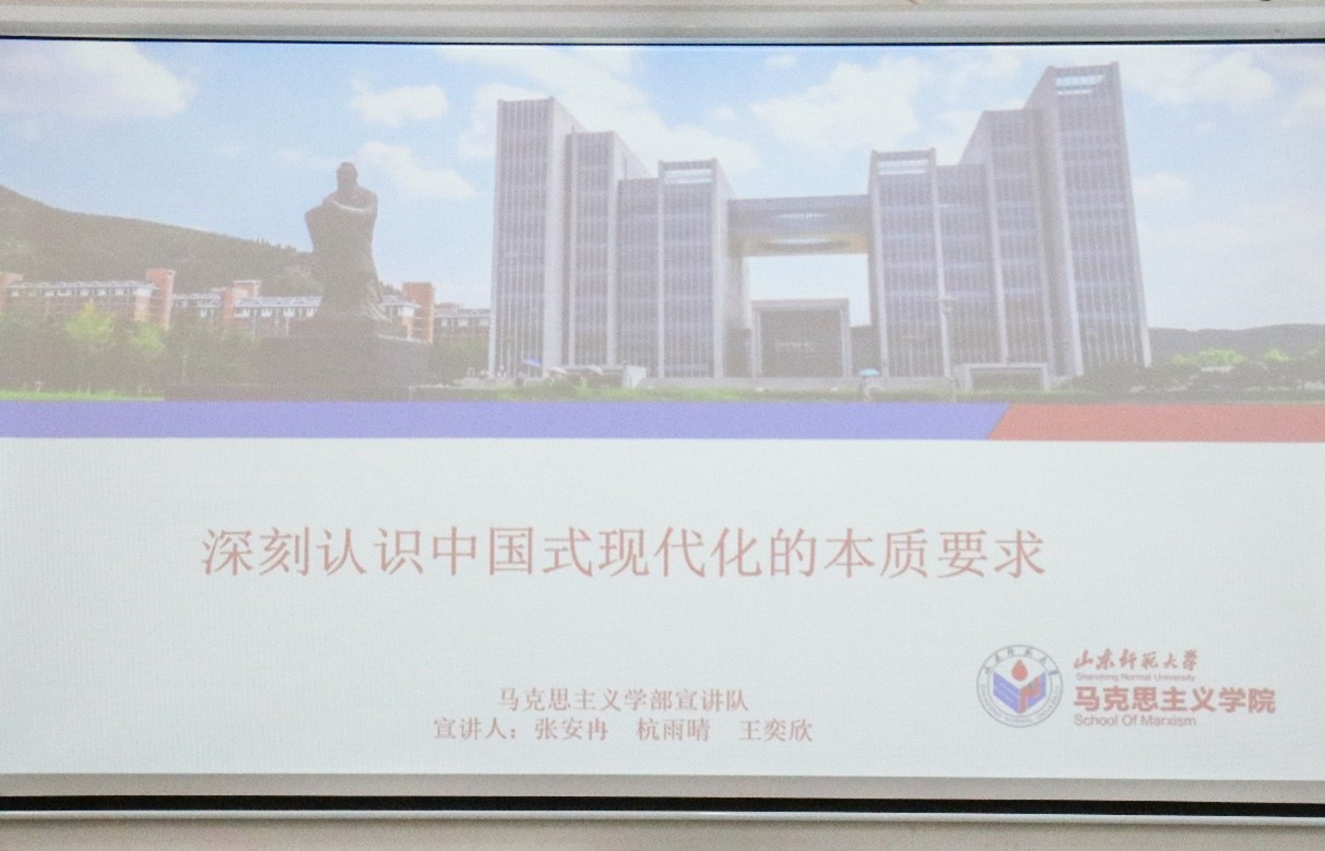 会上,宣讲人张安冉从中国式现代化的本质要求引入建设中国式现代化的三个“坚持”,生动诠释了中国特色社会主义制度的优越性。随后,杭雨晴就中国式现代化建设,从政治、文化、生态、社会四个方面给予团员发展建议,介绍了“五位一体”总体布局与中国现代化建设的关系。最后,王奕欣总结了中国式现代化建设在推动人类命运共同体和人类文明形态的演进两方面的重要意义,帮助团员和入团积极分子树立坚定走中国特色社会主义道路的信念。