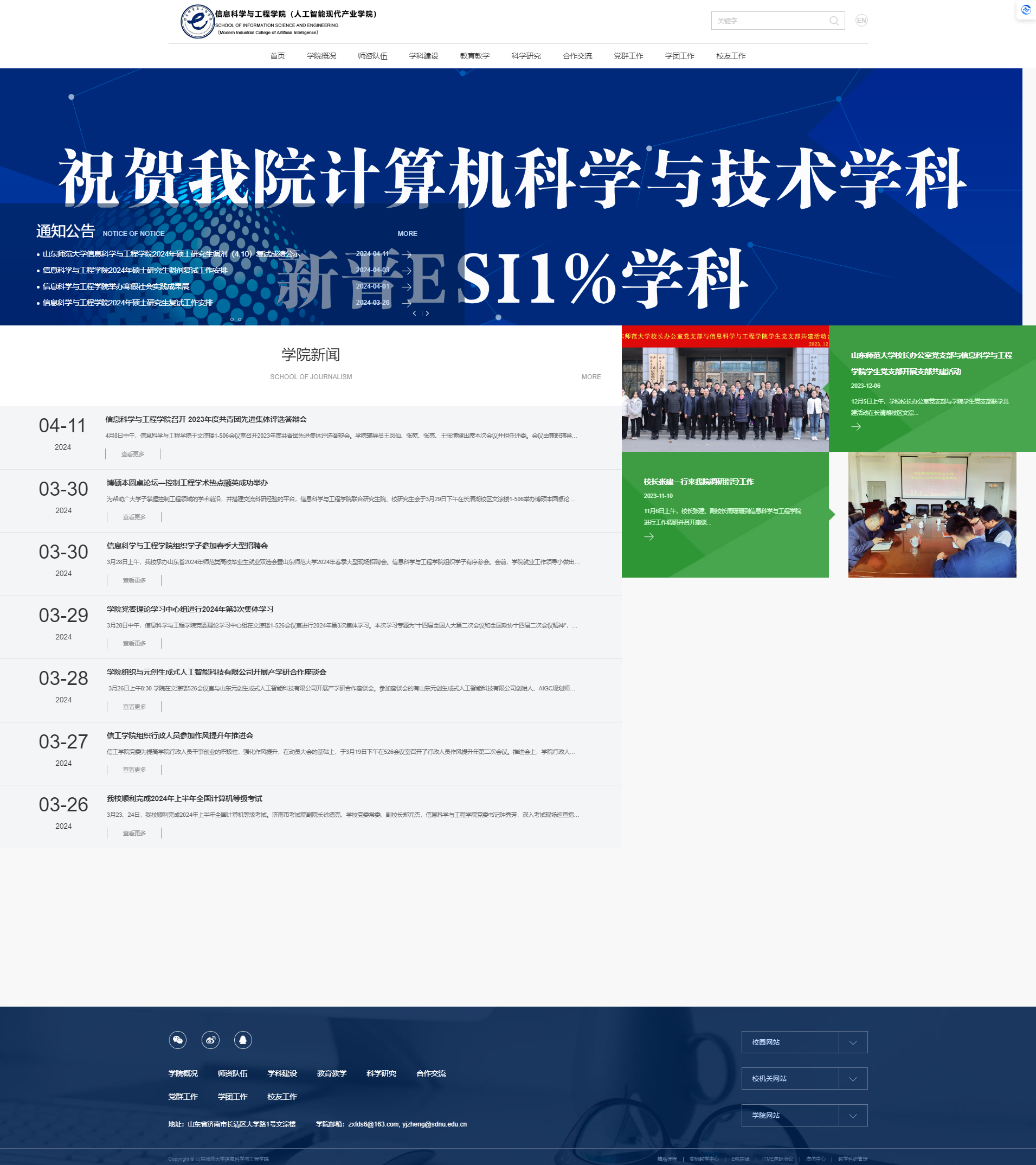 信工学院官方网站始终坚持把准正确方向、把牢使命任务,严格执行“三校三审”制度,以实际行动推动宣传思想文化工作开创新局面,为推动学院高质量发展提供思想支撑。2023年度网站栏目重新更新维护、内容充实、报道及时,报道学院重大新闻与资讯、学院实时动态与各项工作开展情况、学院相关专业学术动态、学院师生先锋模范宣传、本科生研究生活动风采等多方面内容,内容丰富多彩,影响力广泛,多篇稿件被师大新闻网、师大报等媒体平台采用。