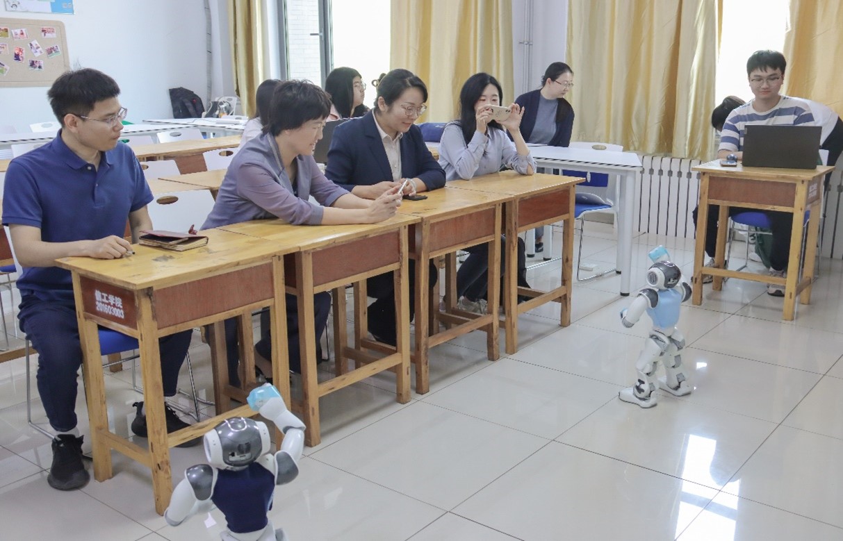 邱靓一行来访期间,还参观了学院机器人实验室,了解实验室建设情况,并观看了机器人表演。