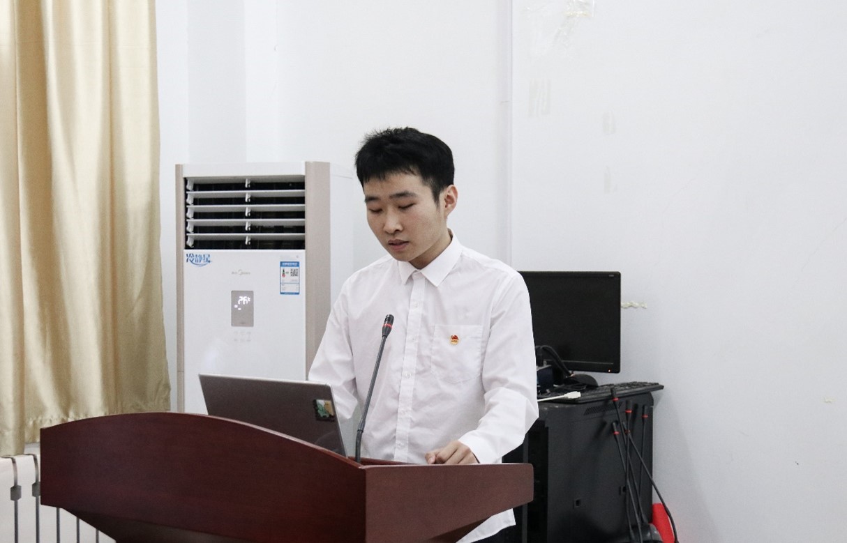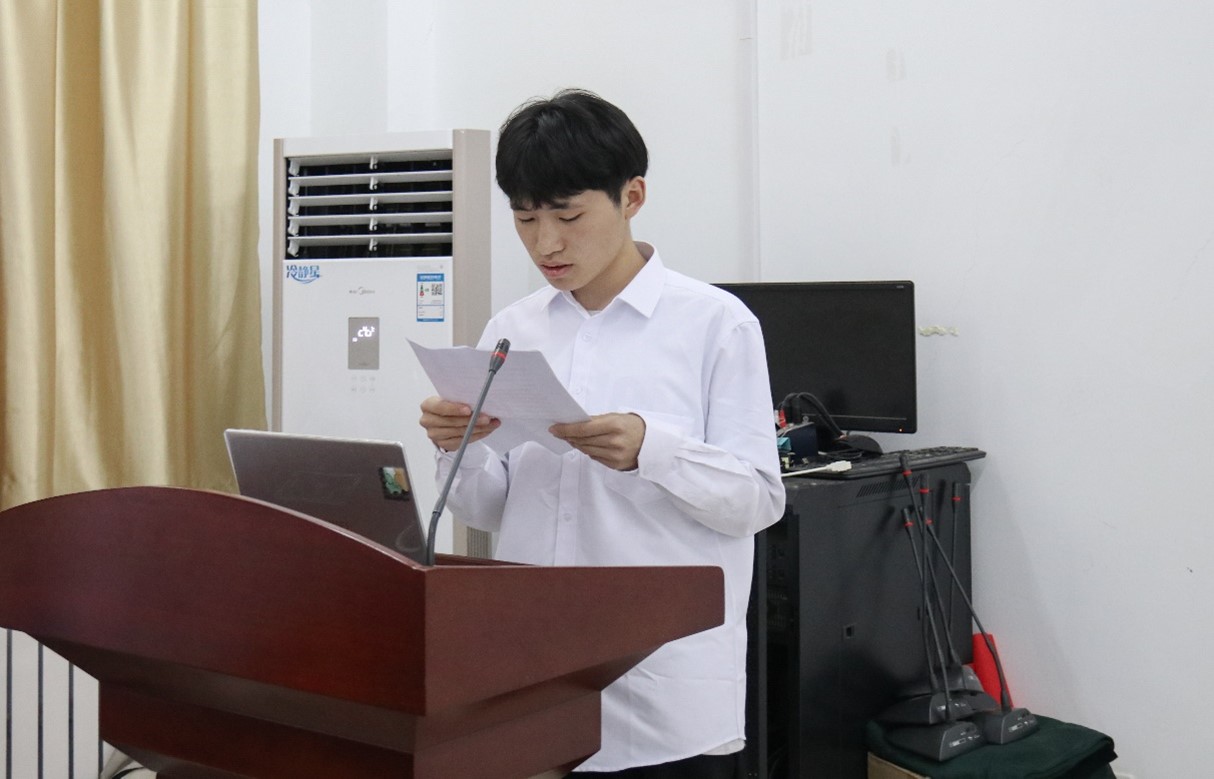 通信本2201班徐常峰作为新发展团员代表发言,他从中国共产主义青年团的性质、地位出发,详细阐明新时代青年的历史使命和责任担当。他表示,团员要提高社会责任感,争做有理想、敢担当、能吃苦、肯奋斗的新时代好青年。2023年度校十佳团员获得者物联网2101班团支书曹连烨作为优秀团员代表发言,他以自身经历为出发点,鼓舞大家在学习生活中能够深入学习专业知识,掌握先进技能,进而灵活应对未来的各项挑战,努力争做新时代青年。