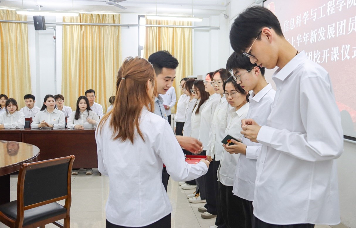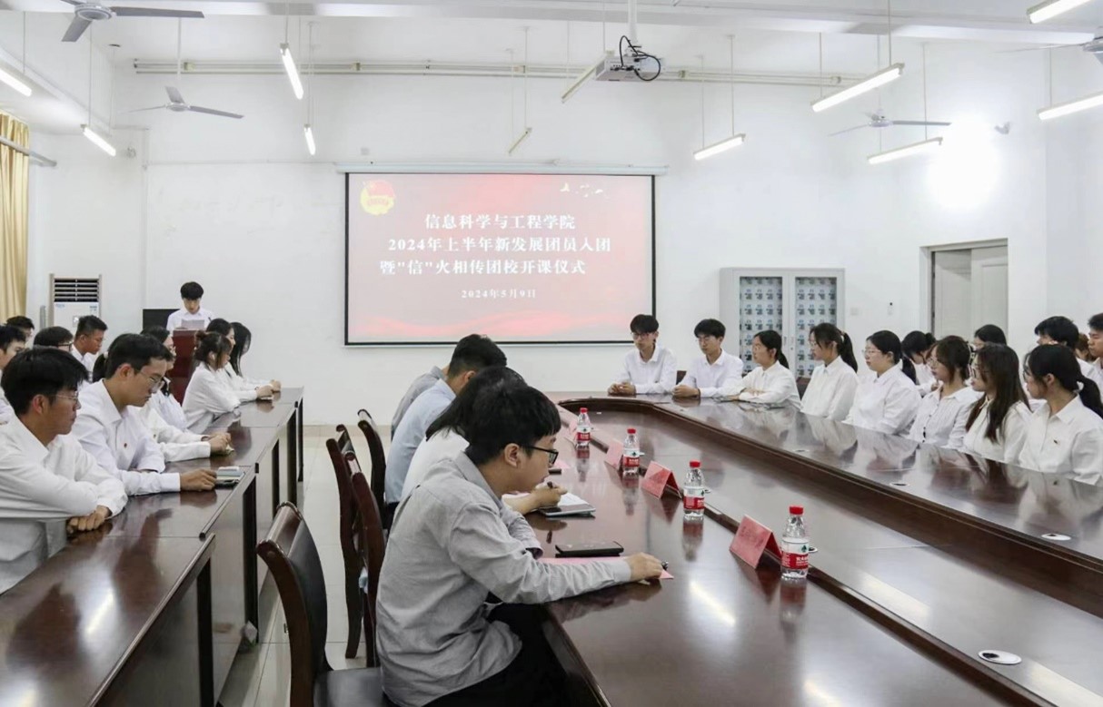 5月9日下午,信息科学与工程学院于长清湖校区文淙楼1-506会议室举办2024年上半年新发展团员入团仪式暨“信”火相传团校开课仪式,学院团委委员、辅导员王凤仙、张亮,研究生辅导员王张博健、兼职辅导员王泽柱出席仪式,新发展团员以及往届团员代表到场参加。