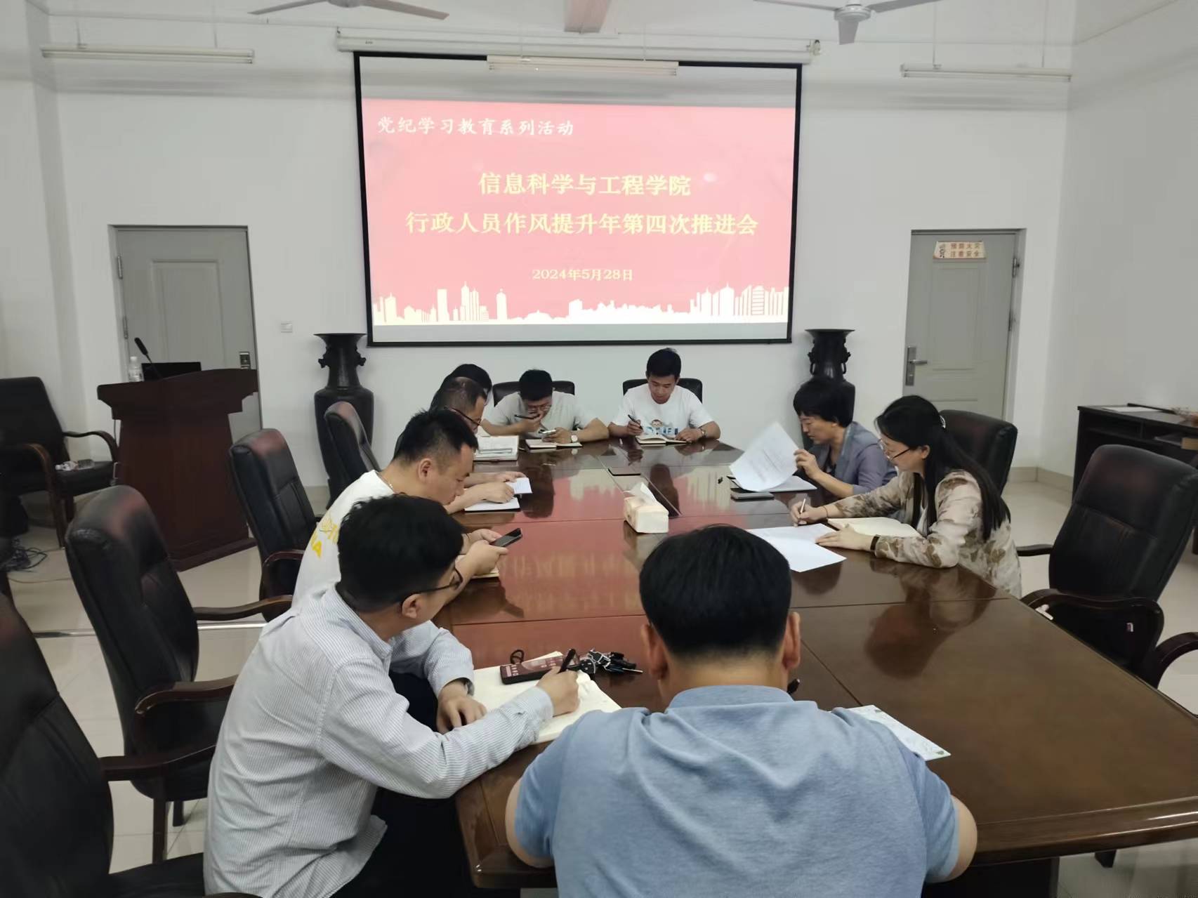 结合学校正在开展的党纪学习教育,信工学院党委为进一步提高学院行政人员干事创业的积极性,提升改进工作作风,于5月28日下午在学院526会议室组织全体行政人员召开了党纪学习教育系列活动之作风提升年第四次推进会。