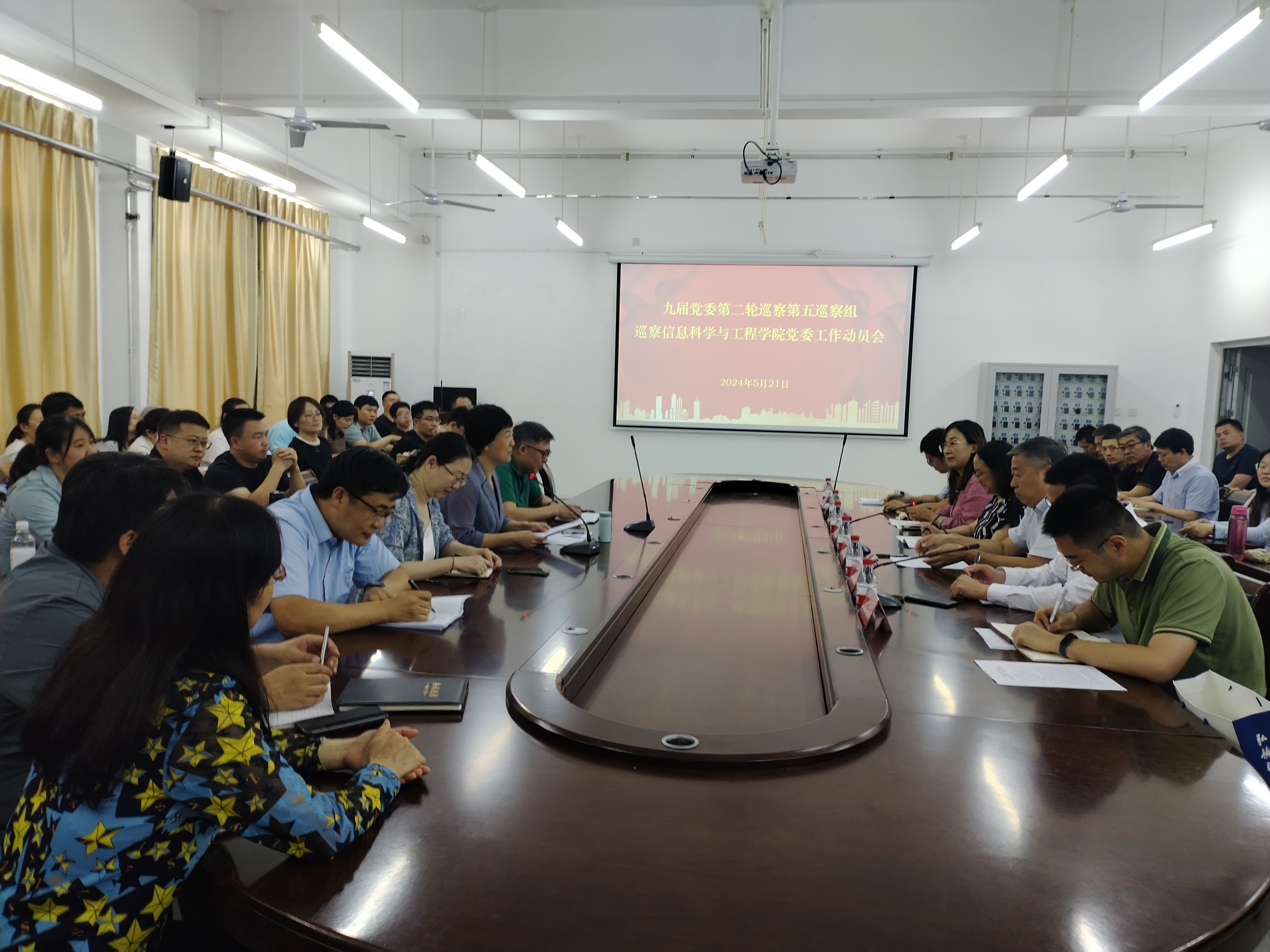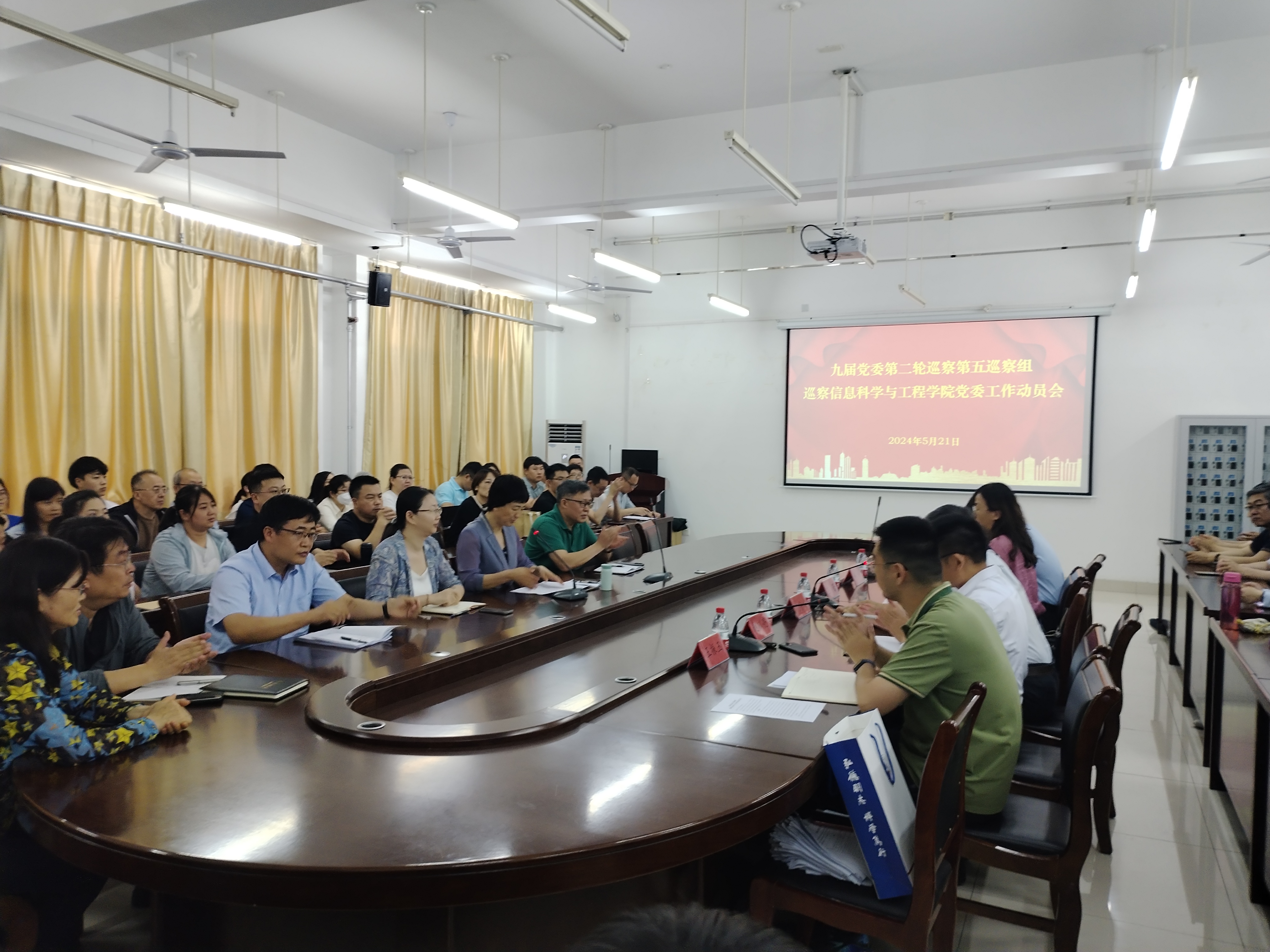根据学校党委统一部署,5月21日,学校党委第五巡察组巡察信息科学与工程学院党委进驻动员会在文淙楼1-506会议室召开。第五巡察组全体成员、学院领导班子成员、教职工及学生代表参加会议。学院党委书记钟秀芳主持会议。