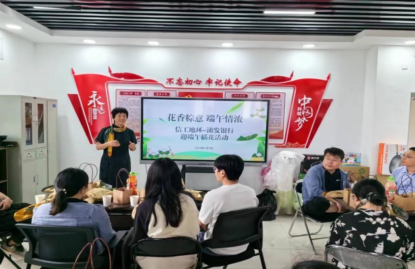 一年一端午,一岁一安康,艾草又飘香,时节逢端阳。为弘扬中华民族优秀传统文化,丰富学院教职工文化生活,营造和谐友爱的工作氛围,6月7日下午,信工学院、地环学院与浦发银行在信工学院522会议室联合举办“花香粽意、端午情浓”插花活动。