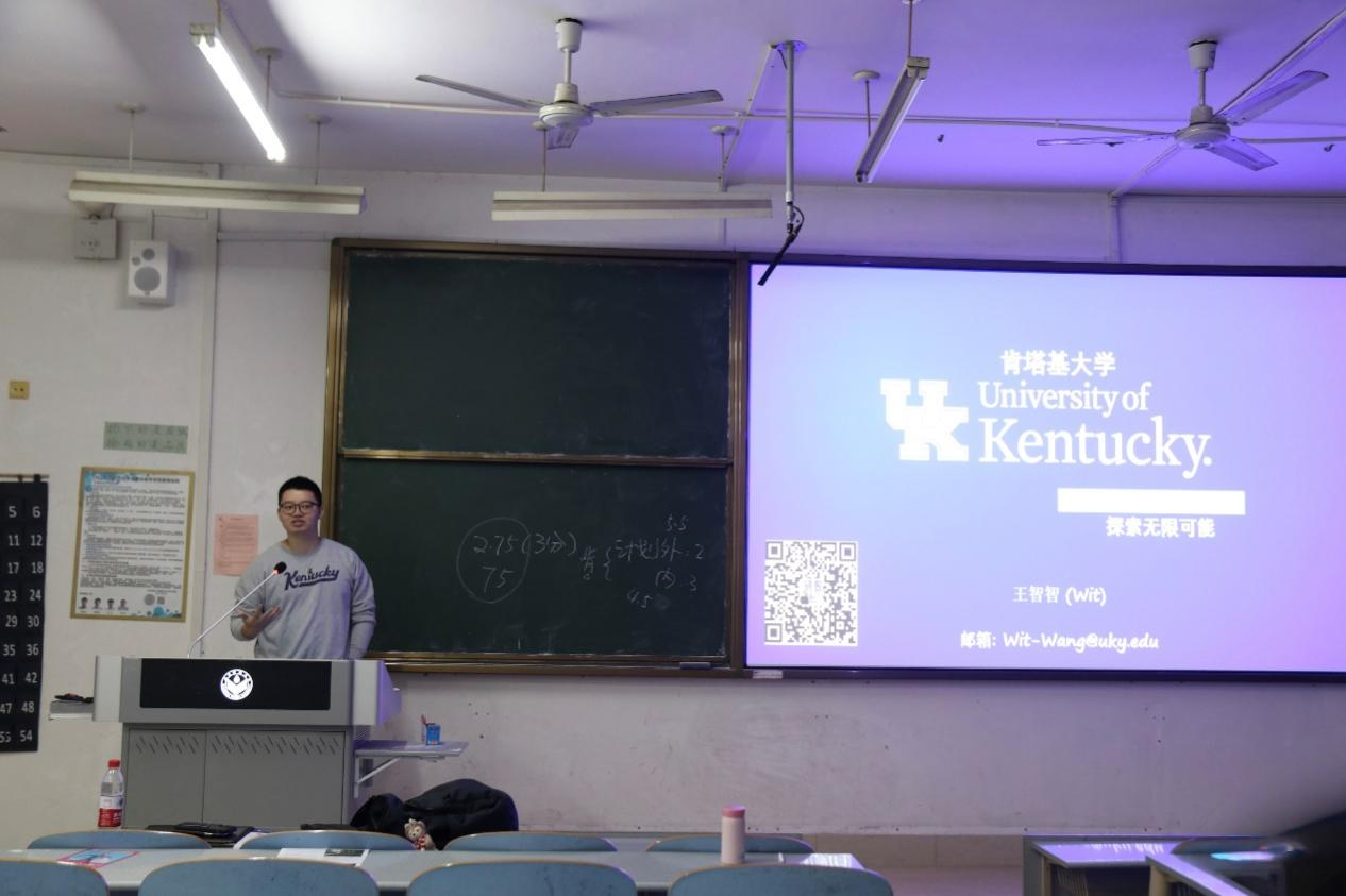 王智智分享了自己的求学经历,向学生介绍了肯塔基城市以及肯塔基大学。他从去年高考形势和社会经济变化等多个方面进行了分析,建议学生在大一时就做好职业生涯规划。他分享了肯塔基大学工程学院的多个项目并强调这对于培养学生的全球竞争力和适应力至关重要。他鼓励学生积极了解各种国际交流项目,把握机会、提升自我。他也提醒学生,出国留学前要充分准备,了解申请要求,希望每位学生都能找到适合自己的发展道路,实现个人价值和职业目标。