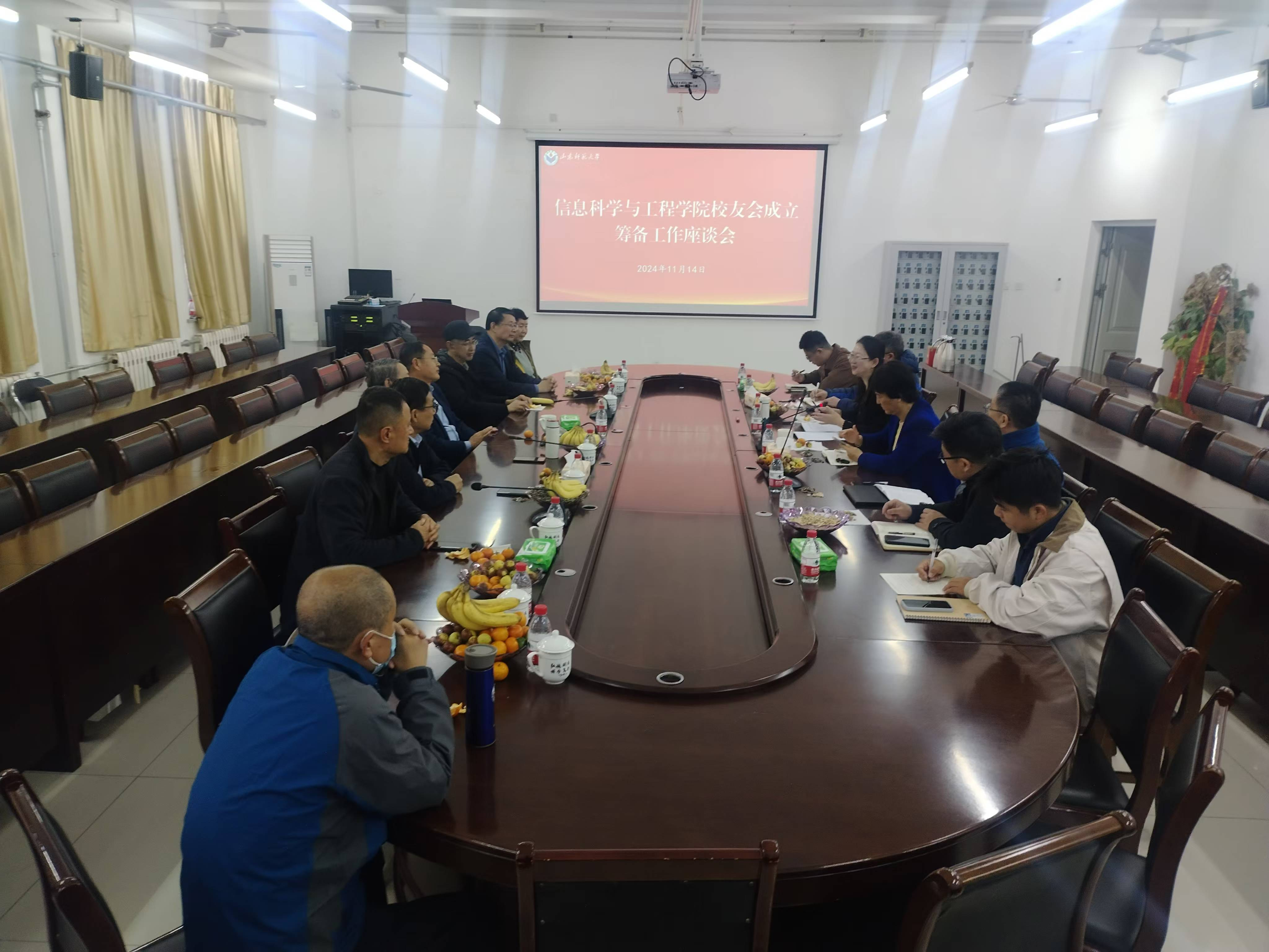 11月14日,山东师范大学校友会信息科学与工程学院分会成立筹备工作座谈会在文淙楼506会议室召开。学院老领导、老教师和学院党政领导班子参加交流座谈。