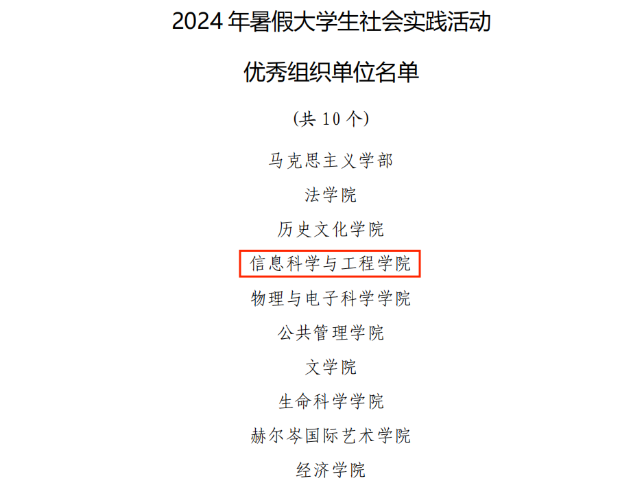 为深入贯彻学习党的二十大精神,表彰2024年暑期社会实践活动取得的众多成果,11月18日,校团委发布了《关于表彰2024年暑假大学生社会实践活动优秀组织单位、优秀服务团队、校级优秀个人、优秀指导教师和优秀调研报告的决定》,在此次表彰中,我院凭借出色的组织工作和丰硕的实践成果,被评为2024年暑假大学生社会实践活动优秀组织单位。