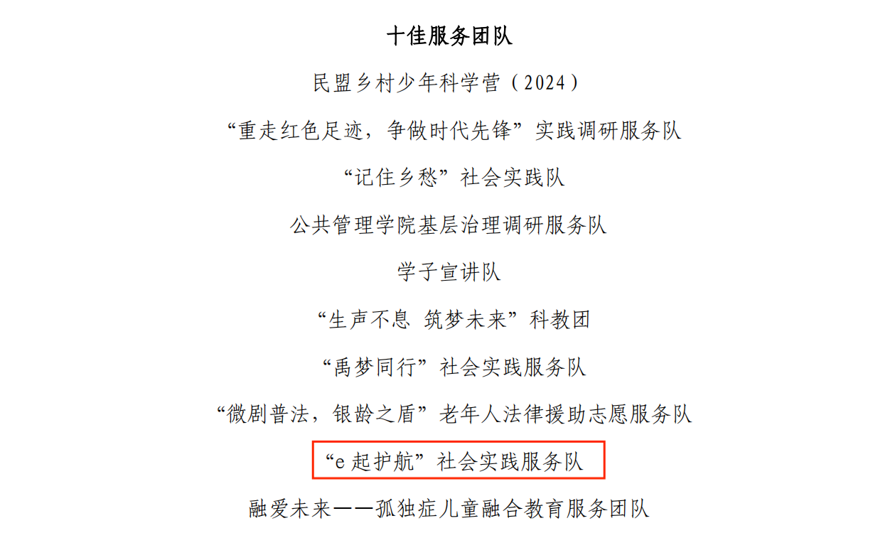 在本次暑假社会实践活动中,学院共获优秀实践团队11支、优秀调研报告一等奖2份、二等奖3份、三等奖5份、优秀个人37名、优秀指导教师5名。尤为值得一提的是,我院“e起护航”社会实践队在山东师范大学2024年暑假社会实践成果评选中荣获 “十佳服务团队”称号。