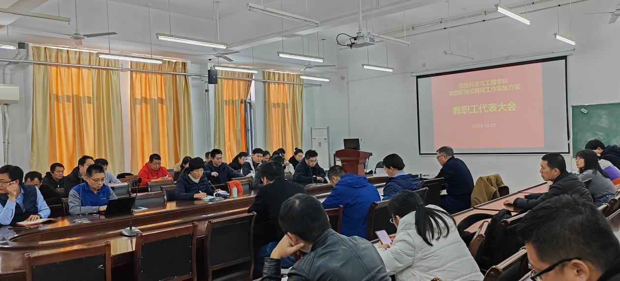 12月5日下午,信工学院在文淙楼506会议室召开第四轮岗位聘用实施方案教代会,学院党委书记钟秀芳、副书记刘一颍、副院长孙建德、副院长宋信敏、学术副院长吕蕾、工会主席马学强以及学院55名代表出席教代会,会议由学院工会主席马学强主持。