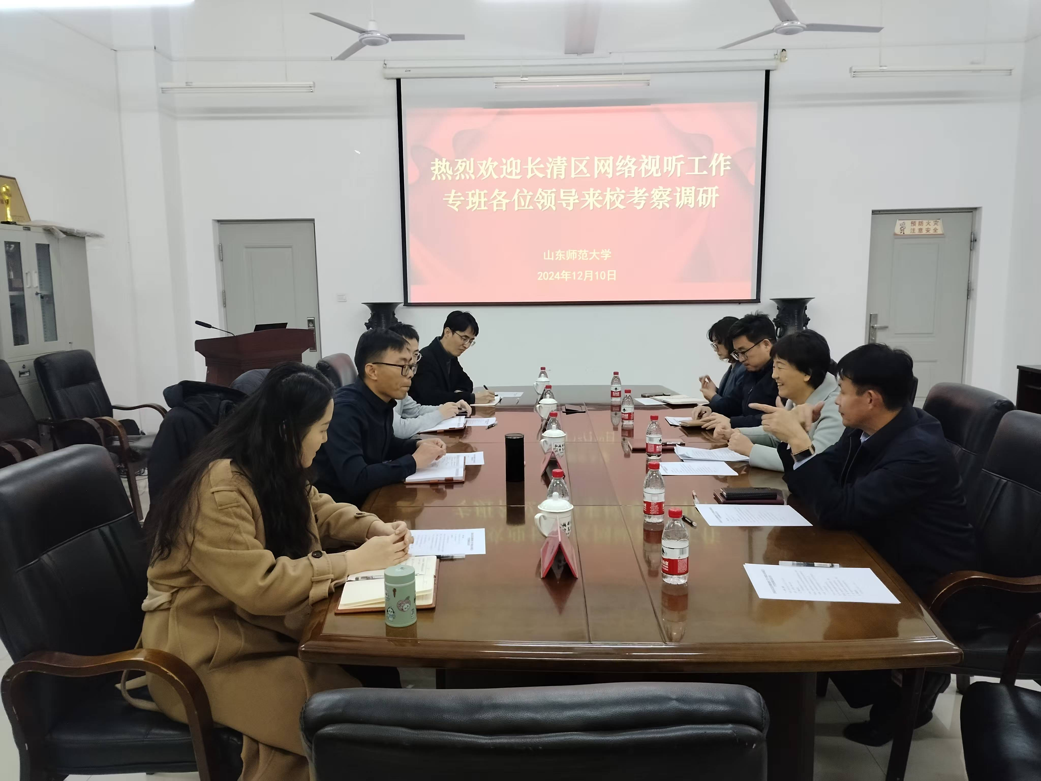 12月10日下午,长清区网络视听工作专班来学院考察调研,在学院文淙楼526会议室召开座谈会。参加座谈会的有长清区工业信息化和科技局党委副书记、副局长孙来敏 、长清区工业信息化和科技局企业服务科副科长陶希文、大学城管委会高校联络服务部工作人员王琳琳、 山东师创信息科技集团·云友汇项目营销总监时公诚、新闻与传媒学院党委书记王秋亮、信工学院党委书记钟秀芳、信工学院学术副院长吕蕾、信工学院教师代表王儒,座谈会由信工学院党委书记钟秀芳主持。