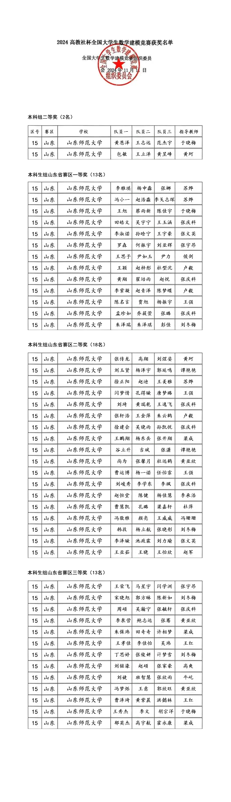 近日,由教育部高等教育司和中国工业与应用数学学会联合主办的2024年全国大学生数学建模竞赛成绩揭晓,我院本科生70支参赛队伍共获46项奖项,其中荣获国家级二等奖2项,山东省一等奖13项、二等奖18项,三等奖13项。