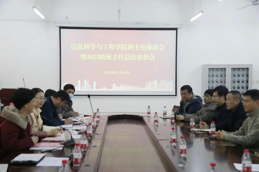 12月26日上午,信息科学与工程学院于长清湖校区文淙楼1-506会议室举办班主任座谈会暨2023级班主任总结表彰会。学院党委书记钟秀芳、副院长孙建德、本科教学负责人贾伟宽出席,全体2023级、2024班主任、辅导员以及2023级本科生代表参加,会议由学院党委副书记、纪委书记刘一颍主持。