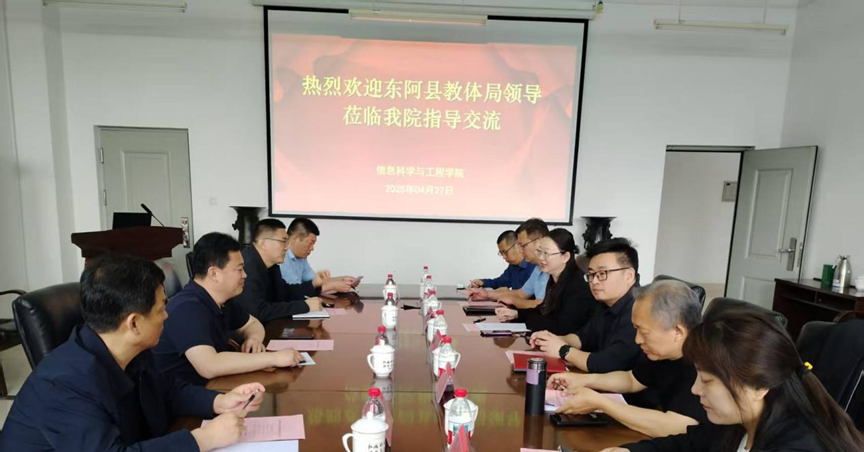 4月27日,为深化校地合作,推动教育信息化与区域发展深度融合,东阿县教育和体育局局长曹兵一行到学院进行考察交流。此次访问既是对4月22日学院赴东阿县开展信息技术调研的回访,也是双方进一步探讨合作内容、落实合作项目的重要契机。