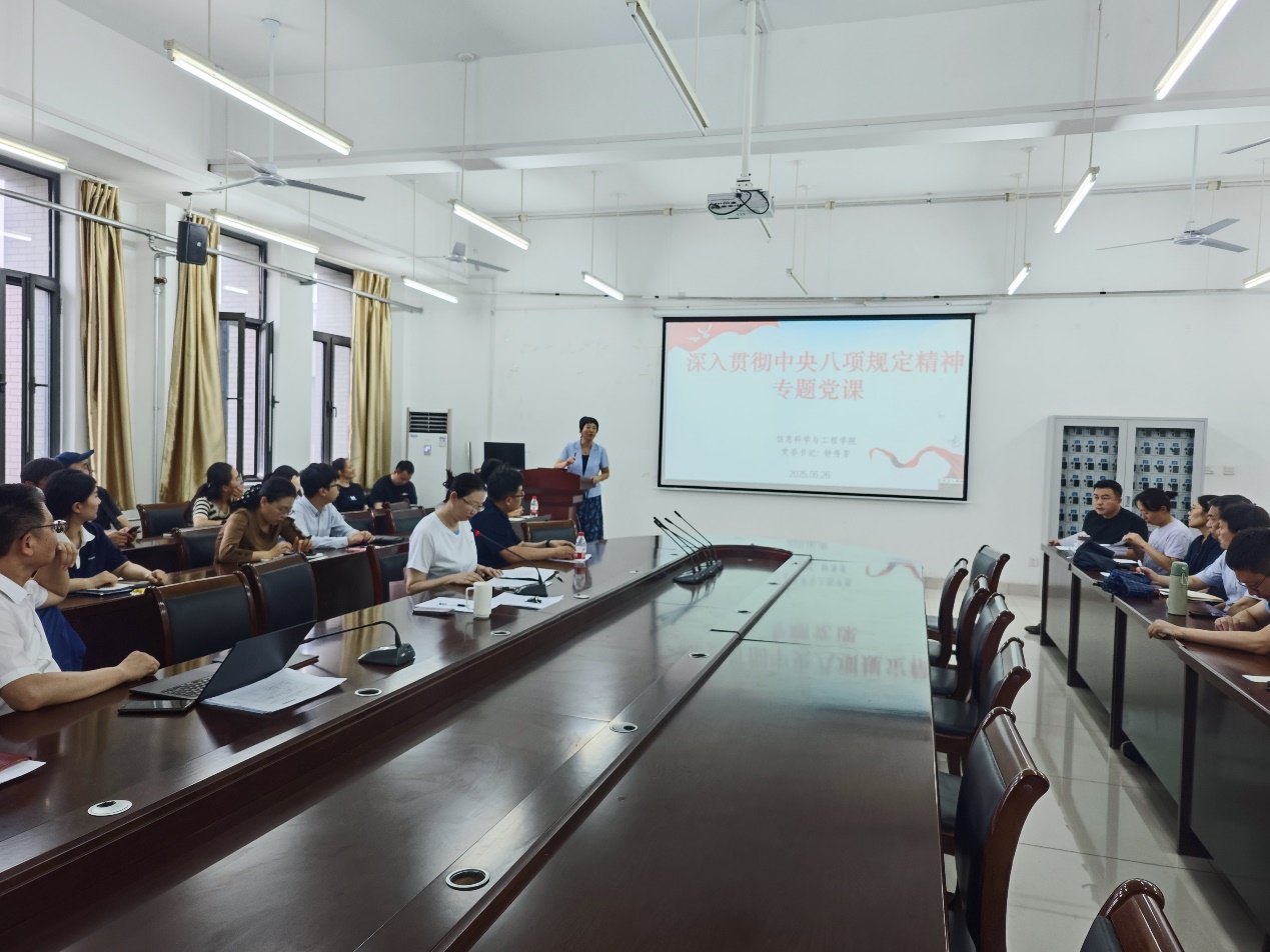 6月26日下午,学院党委书记钟秀芳以“深入贯彻中央八项规定精神”为主题,为全院教职工讲授专题党课。本次党课结合高校领域典型案例与科研经费管理规范,旨在强化全院作风建设,筑牢思想防线。
