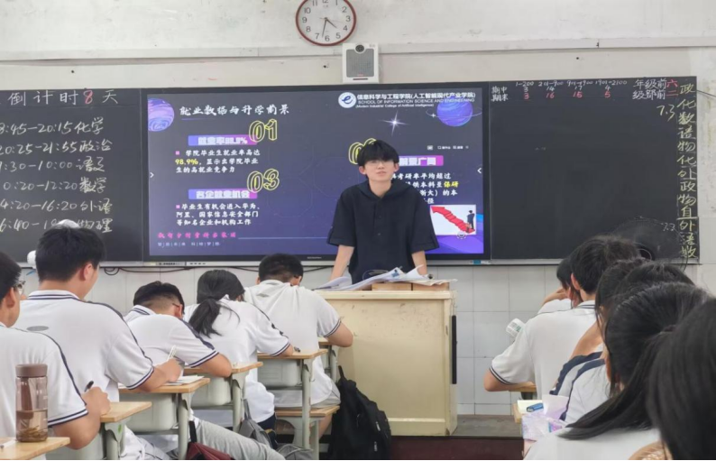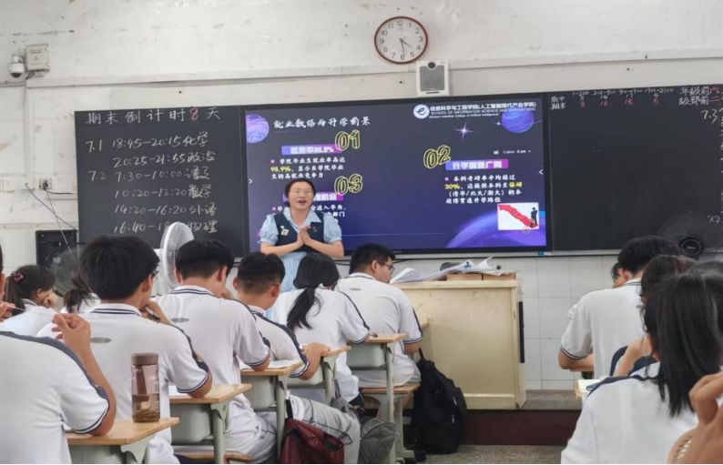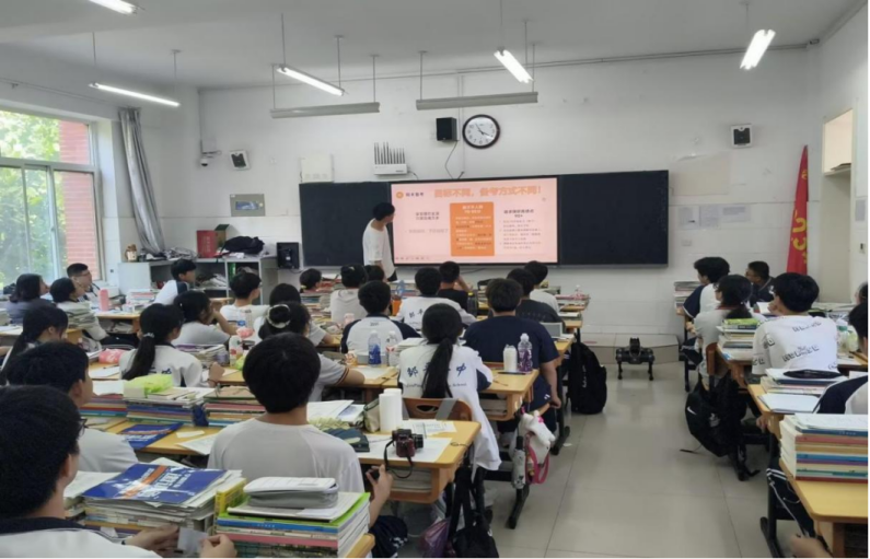 在滨州邹平二中,实践队员围绕机器人领域前沿开展科普活动,为同学们讲解虚拟现实、量子计算及人工智能等普及知识。现场通过机器狗动态演示,生动展示了理论向应用的转化过程。活动最后,实践队员结合高中生学业需求,分享了高效的期末备考策略与科学的时间管理方法,引导当地学子将探索科技的专注力与创新思维迁移至学习实践。