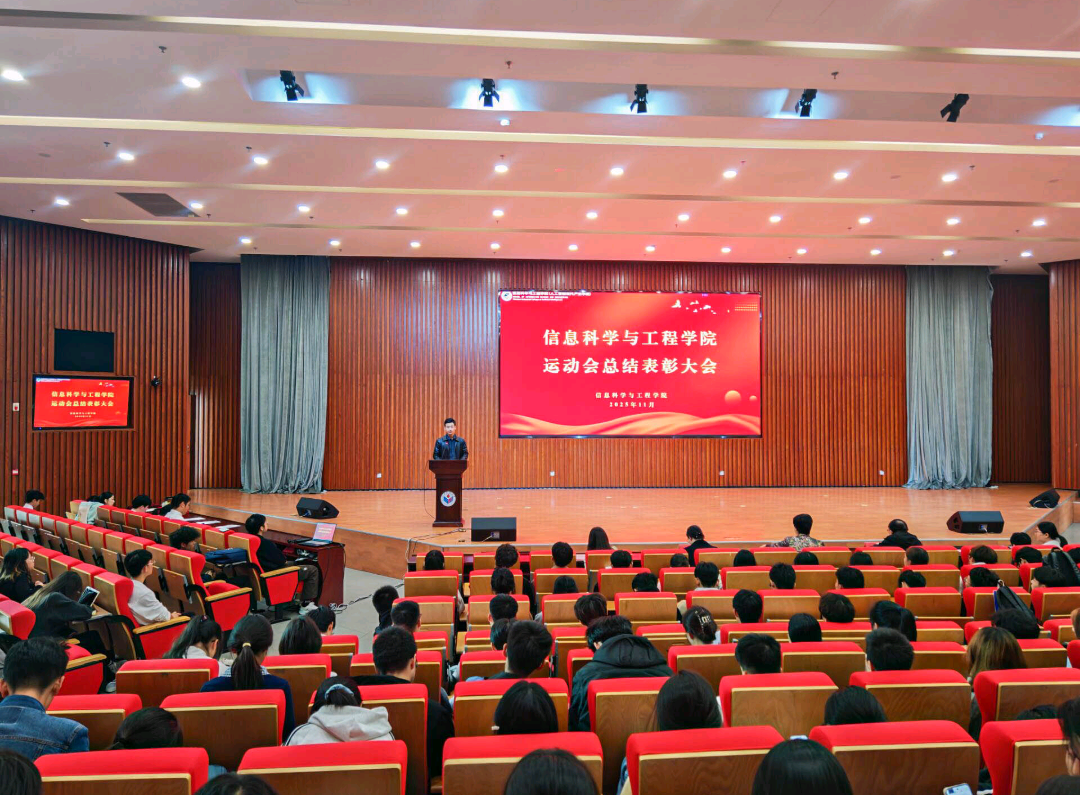 11月6日,信息科学与工程学院于长清湖校区文昌楼105报告厅召开2025年校运动会总结表彰大会。学院党委书记钟秀芳,党委副书记、纪委书记刘一颍,工会主席马学强出席,学院教师代表、学生运动员、教练员、志愿者以及学生组织成员参加。大会由2023级辅导员张亮主持。