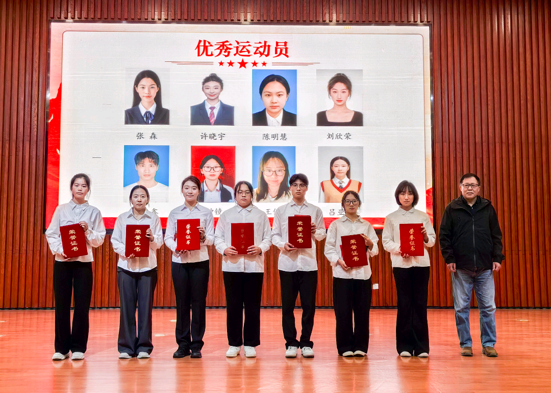 本科生2024级辅导员苗蓝亓宣读了学院师生在2025年校运会上取得的各项赛事成绩。随后,负责学生会体育部、文艺部和权益服务部的负责人依次上台针对备赛过程中的相关工作做了总结汇报,运动员代表分享备赛经验和心得。