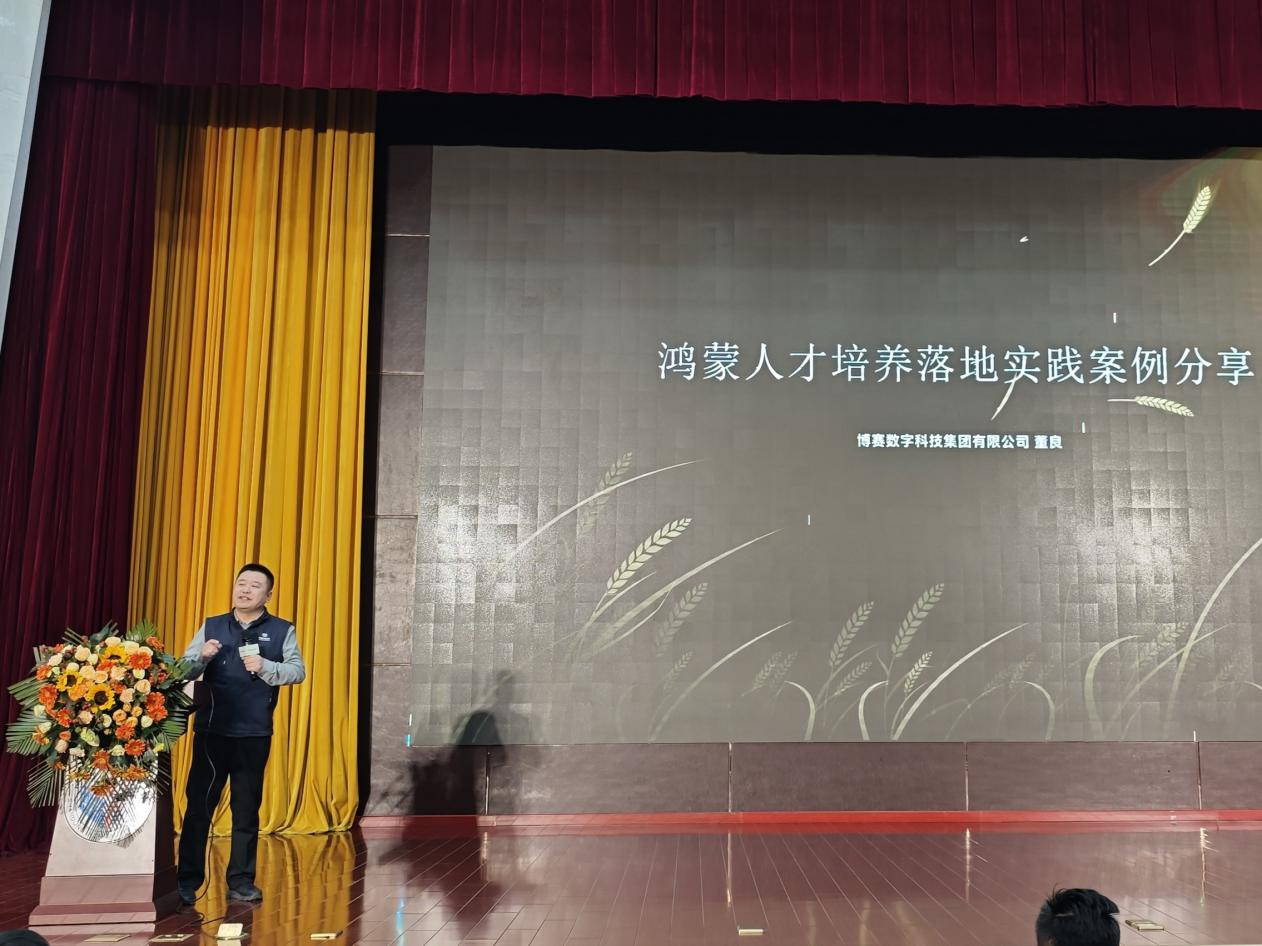 博赛董事长董良介绍了公司业务,与华为合作的主要领域及鸿蒙人才培养落地实践案例。