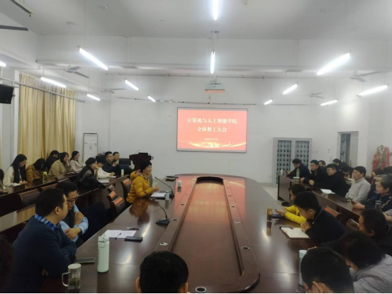 12月 19 日下午,学院在长清湖校区文淙楼 506 会议室召开学期末全体教职工大会。会议由学院党委书记钟秀芳主持,全体教职工参会。