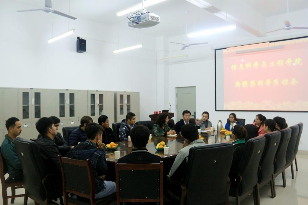 为加强学院新疆籍少数民族学生的教育管理工作,使学院各年级新疆籍同学更好地融入学院大家庭,10月27日晚,信息科学与工程学院于新楼529会议室举办新疆籍同学座谈会。学院党委副书记郝迎伟、住学院新疆内派教师古丽拜克热·买买提,新疆内派我校教师孙明祥、买买提艾力·卡地尔、辅导员刘卓出席本次座谈会,学院全体新疆籍同学参加座谈会。