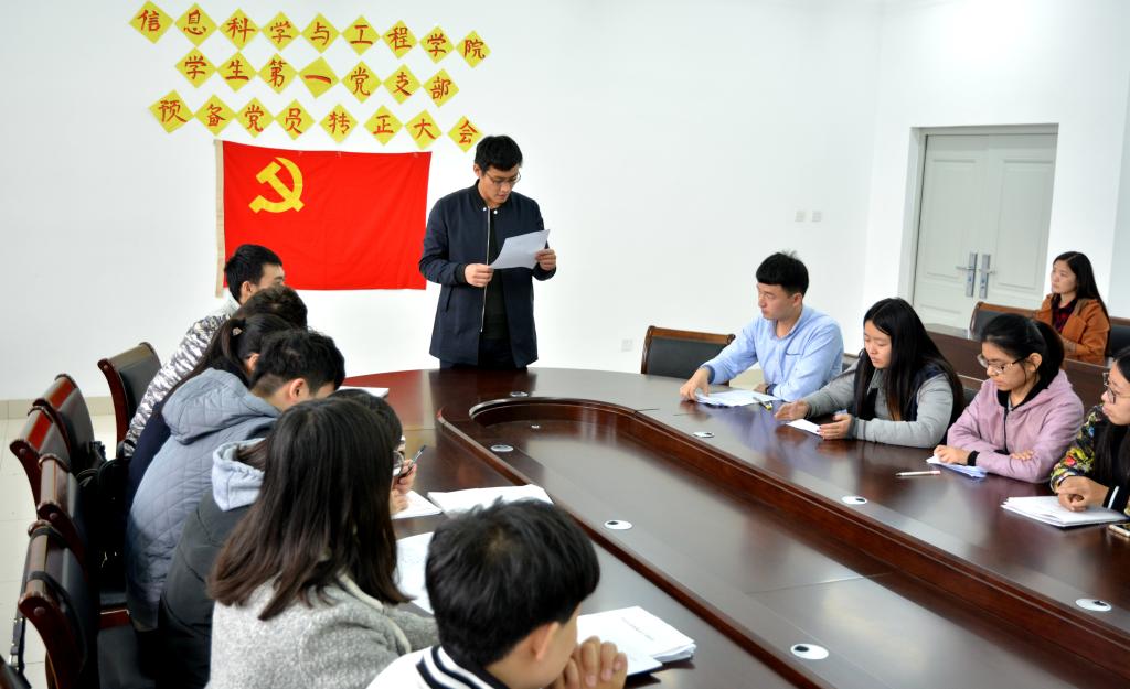 10月31日,信息科学与工程学院学生第一党支部预备党员转正大会在长清湖校区学院新楼506会议室举行,支部4名正式党员、24名预备党员共28名同志到场参加,学生第一党支部书记李涛主持会议。