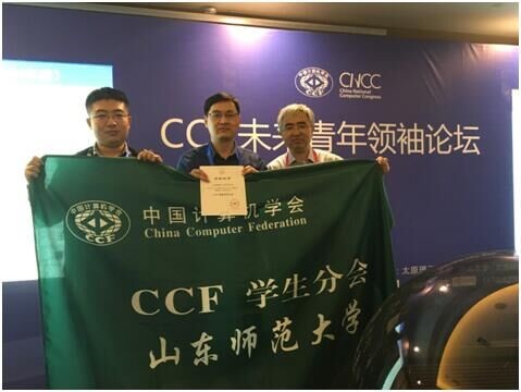 10月20日至10月23日,2016年中国计算机大会(CNCC)在山西省太原市隆重举行,CCF山东师范大学学生分会受邀参加CCF表彰仪式。在21日下午CNCC分论坛-未来青年领袖论坛中,CCF山东师范大学学生分会指导委员会委员郑向伟教授(代指导委员会主任刘弘教授)、CCF山东师范大学学生分会主席柳广鹏出席表彰大会并发言。中国计算机学会执行副秘书长、中国计算机学会会士、博士生导师陈熙霖研究院亲自为我校代表颁奖。