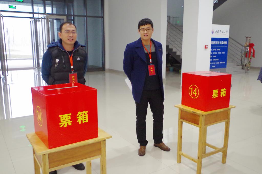 按照学校指示,学院已完成前期宣传、公示选民名单、提供候选人名单、发放选民证等工作,准备就绪。投票选举正式开始,学院全体教师在新实验楼506会议室进行选举投票。学院党委书记张维军向介绍两位候选人的情况并说明了此次选举的流程。发放选票后,老师们认真阅读选票,严肃填写个人的选举意愿,有条不紊的于投票箱处郑重地投下神圣一票。学院积极组织各年级专业进行投票工作,在新实验楼一层大厅,各专业负责人组织学生认真填写个人信息、在验证处出示选民证进行验证、在发票处取选票,最后在写票处认真填写投下自己庄严的一票。选举投票现场设有询问处,由相关负责人在此帮助同学们解决过程中遇到的各种问题。全院顺利结束投票工作后,工作人员将投票箱搬至五楼学院办公室,纪新智和李涛进行检票,院学生会主席罗雪鹏和秘书处杜启翰统计票数,并报送至学校人大代表换届选举工作领导办公室。
