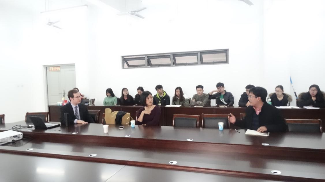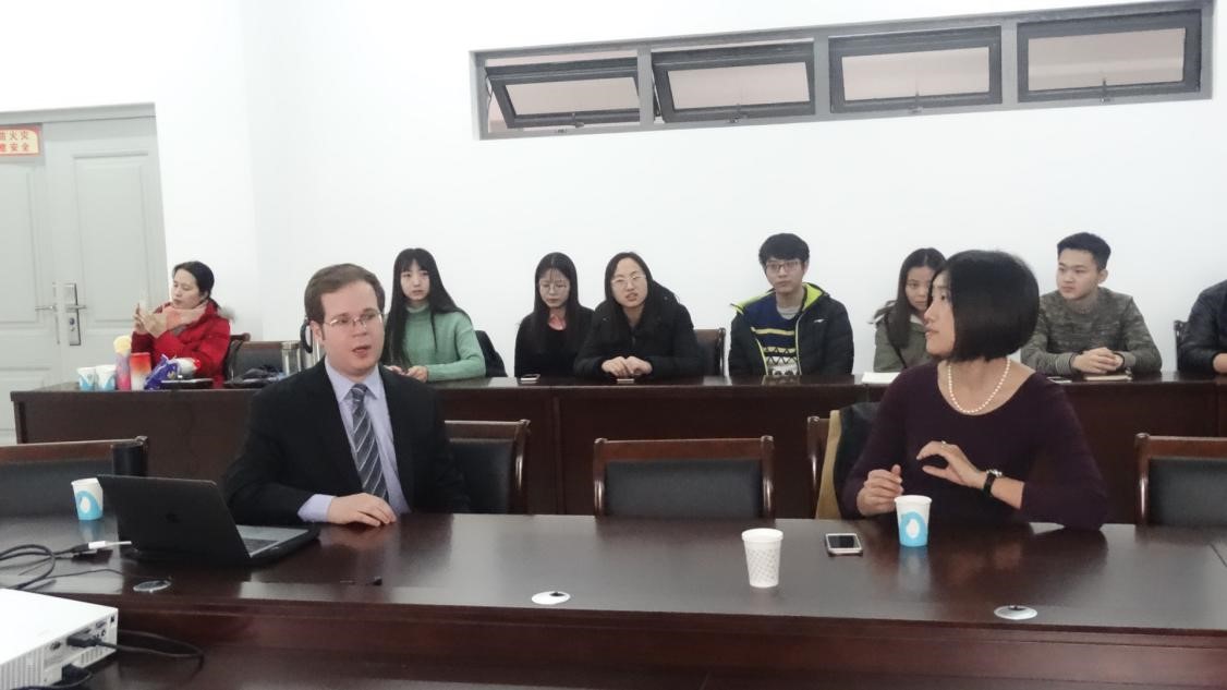 12月30日上午,应山东师范大学信息科学与工程学院邀请,美国凯斯西储大学计算机工程硕士; 美国云端服务商CloudOne首席技术官, 总工程师;IBM高级架构师Benjamin Chodroff教授做了题目为《Cloud computing and IOT application and development life cycle in United States》的学术报告。报告会在长清湖校区信息学院实验楼506会议室举行,由学院副院长郑元杰教授主持,Benjamin Chodroff夫人以及学院部分老师、博士、硕士研究生参加了此次报告。
