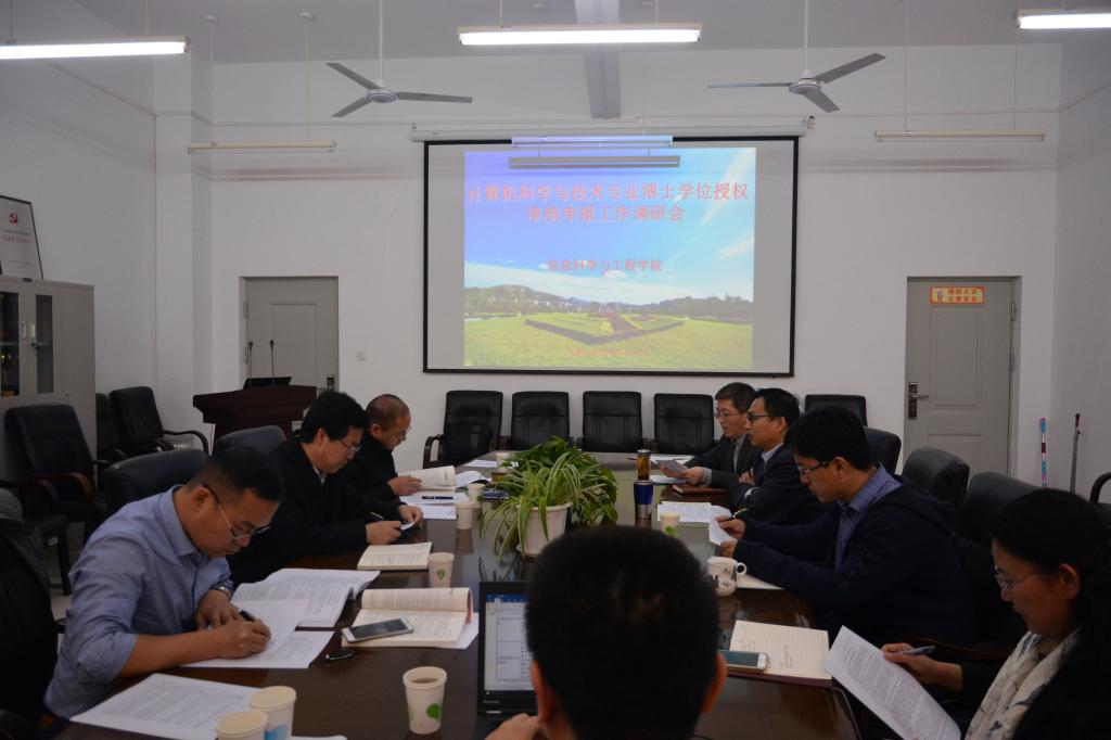 4月18日,在长清湖校区信工学院526会议室召开了信工学院申报计算机科学与技术专业博士一级学科学位授权工作调研会,研究生院院长王传奎一行到学院调研学位点申报准备工作,学院相关负责人及学位点负责人参加了调研会。