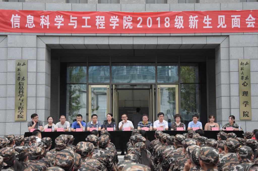 9月5日,信息科学与工程学院2018级本科生师生见面会于文宗楼前顺利召开。学院党委书记张维军,院长张化祥,党委副书记孙芙蓉,副院长郑元杰、孙建德,计算机系主任王红,通信工程系主任杨峰,实验中心主任徐连诚,团委书记纪新智,辅导员石晓雪、刘卓、李涛、王凤仙及全体2018级本科新生共同出席会议。本次见面会由2018级辅导员王凤仙主持。