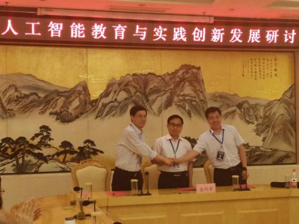 2019年5月31日,山东师范大学信息科学与工程学院党委书记张维军、副院长孙建德一行,应邀赴邹城参加了山东邹城人工智能教育与实践创新发展研讨会,并与邹城市教育和体育局、山东正方实业发展有限公司联合签署了山东省内人工智能教育领域“政产学研用”第一个合作协议,迈出了我省人工智能教育尝试的第一步。
