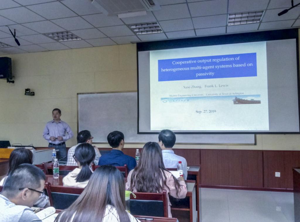 9月27日,应山东师范大学信息科学与工程学院邀请,东南大学温广辉教授、哈尔滨工程大学张戌希副教授于长清湖校区信息科学与工程学院406会议室分别做了题为“切换拓扑下多智能体系统一致性控制及其应用”和“Cooperative output regulation of heterogeneous multi-agent systems based on passivity”的学术报告。报告会由信息科学与工程学院牛奔教授主持,学院部分教师、硕博士研究生聆听了此次报告,并参与讨论。
