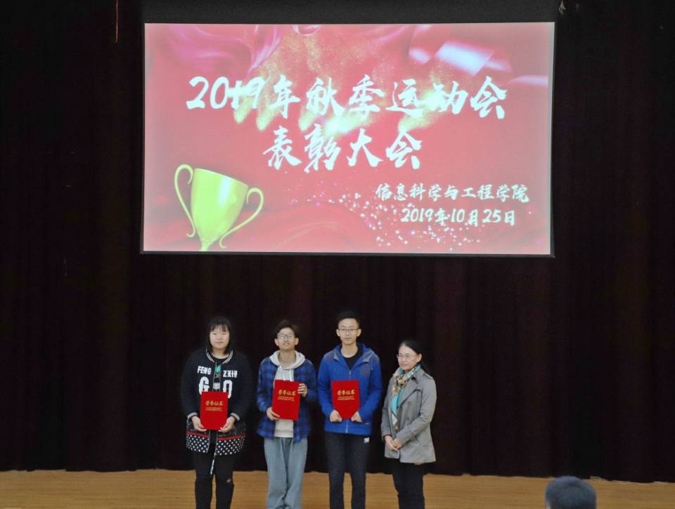 2019年10月25日,信息科学与工程学院2019年校运会表彰大会在文渊楼C154报告厅举行,学院党委副书记孙芙蓉,团委书记高伟,辅导员老师李涛、王凤仙、苗蓝亓出席此次会议,信工学院田径队全体成员和部分17、18、19级同学到场聆听。
