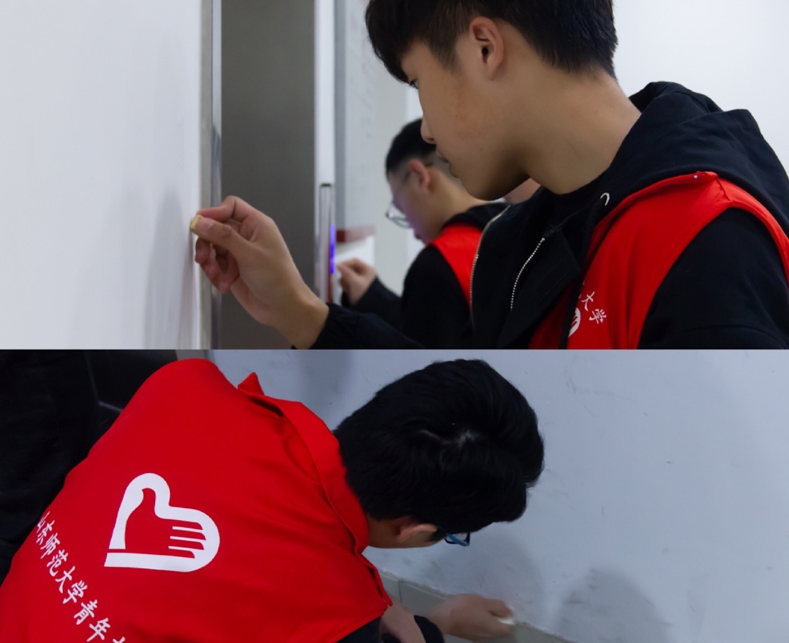 活动过程中,志愿者们分工合作,干劲十足,用橡皮仔细擦拭墙面上的污渍,使墙面焕然一新。志愿者表示此前我院多次开展志愿活动,参与志愿活动既能丰富自己的课余生活、自我磨练、提高协作能力,又能改善学院环境、为学院建设作出贡献。参与志愿服务过程中,大家充分发扬奉献精神,不遗余力地参与清洁工作,为优化信工学院的形象共同努力。