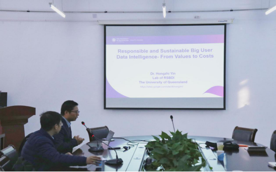 11月27日,应山东师范大学信息科学与工程学院邀请,昆士兰大学Hongzhi Yin博士于长清湖校区文宗楼506会议室做了题为“Responsible and Sustainable Big User Data Intelligence From Values to Costs”的学术报告。报告会由信息科学与工程学院朱磊教授主持,学院部分教师、硕博士研究生聆听了此次报告,并参与讨论。