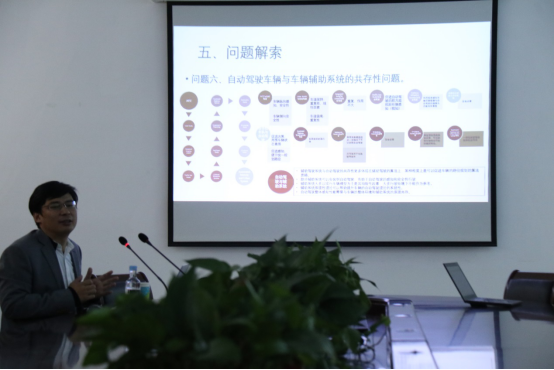 报告会中,唐晓峰博士首先从当前智能汽车的研究原理角度出发,分析当前智能汽车存在的问题,以多年的项目研究经历为参考,详细提出了当前智能汽车在交叉学科下融合研究的难点和需要解决的难题,然后阐述了基于复杂融合环境的智能汽车虚拟仿真体系研究和基于重构复杂融合技术的自动驾驶车辆研究。报告会最后环节,唐晓峰博士认为通过将人的认知模型引入人工智能系统,以此与智能汽车相融合的研究是未来智能汽车的发展趋势。
