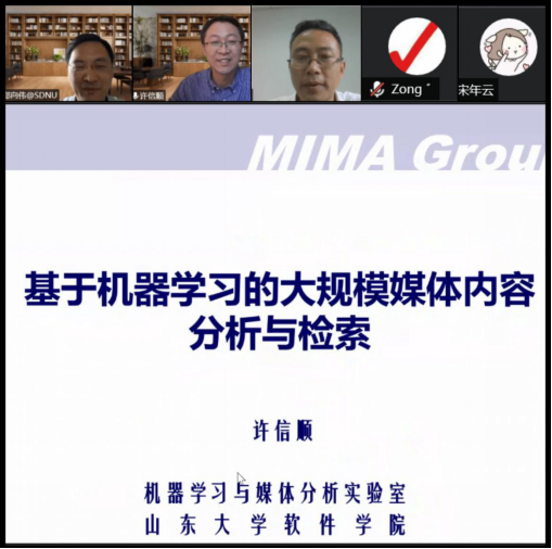 9月29日,“信息科学与工程学院‘治学·修身’学术论坛之‘师说’导师大讲坛”于线上报告会成功举行。应学院邀请,山东大学软件学院教授、博士生导师许信顺教授做了题为“基于机器学习的大规模媒体内容分析与检索”的学术报告,本次学术报告由山东师范大学信息科学与工程学院副院长、博士生导师郑向伟教授主持,学院部分教师、硕博士研究生聆听了此次报告,并参与讨论。