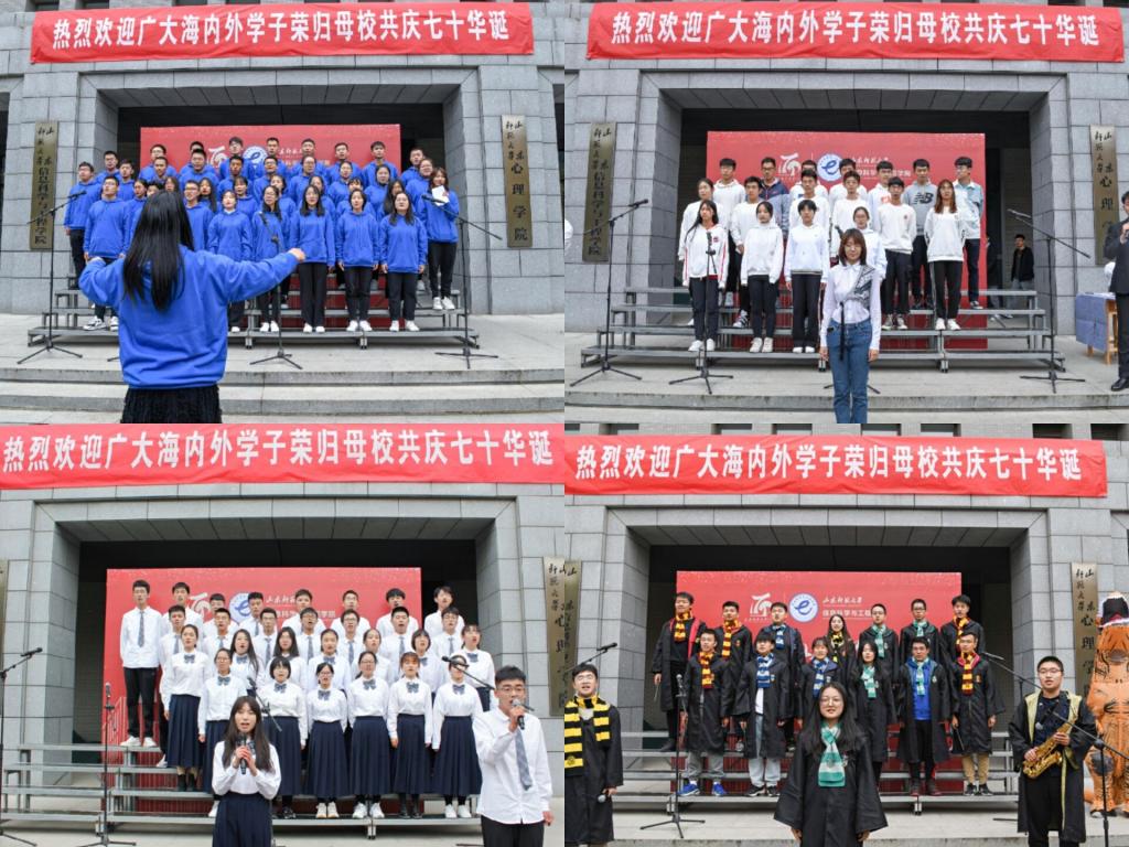 为献礼山东师范大学70周年校庆,信息科学与工程学院团委于10月29日中午在文宗楼前举办“新声唱嘹亮,E同再远航”班级合唱比赛。学院学工办主任、团委书记高伟,辅导员老师王凤仙、苗蓝亓、张乾以及部分学生家长代表到场观赛,2020级全体同学参加了此次活动。