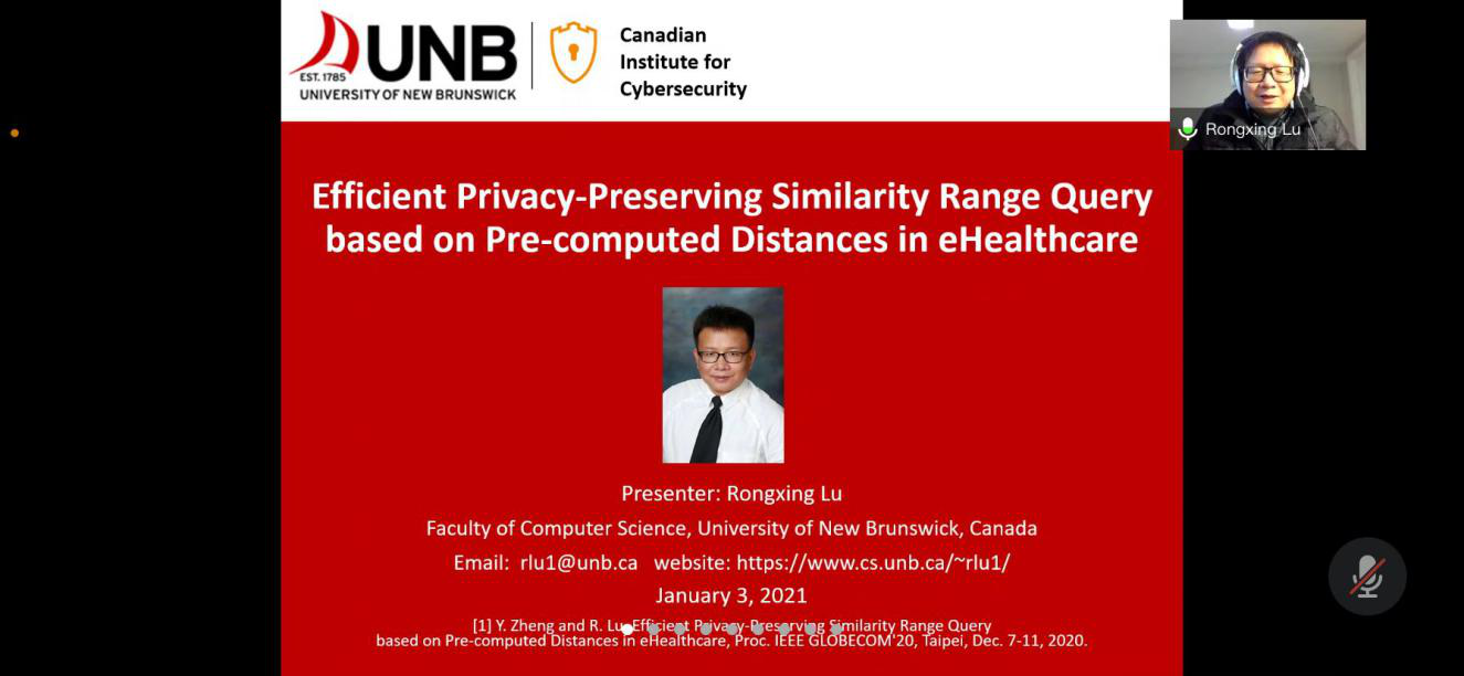 2021年1月4日,信息科学与工程学院线上报告会成功举办。应学院邀请,加拿大新布伦瑞克大学计算机科学学院副教授Rongxing Lu做了题为“Efficient Privacy-Preserving Similarity Range Query based onPre-computed Distances in eHealthcare”的学术报告,本次报告由山东师范大学信息科学与工程学院魏晓超老师主持,学院部分教师、硕博士研究生聆听了此次报告,并参与讨论。