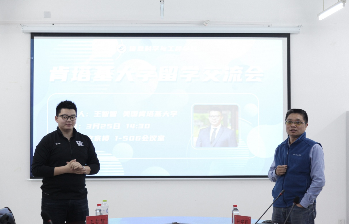 会议伊始,孙建德首先代表学院对王智智的到来表示热烈欢迎。随后,王智智从肯塔基大学的学校位置、基础设施、研究领域等方面进行详细介绍。紧接着,他围绕联合培养项目的申请要求、办学模式、制度优势三个方面,向与会人员详细介绍了两校合作的具体情况。