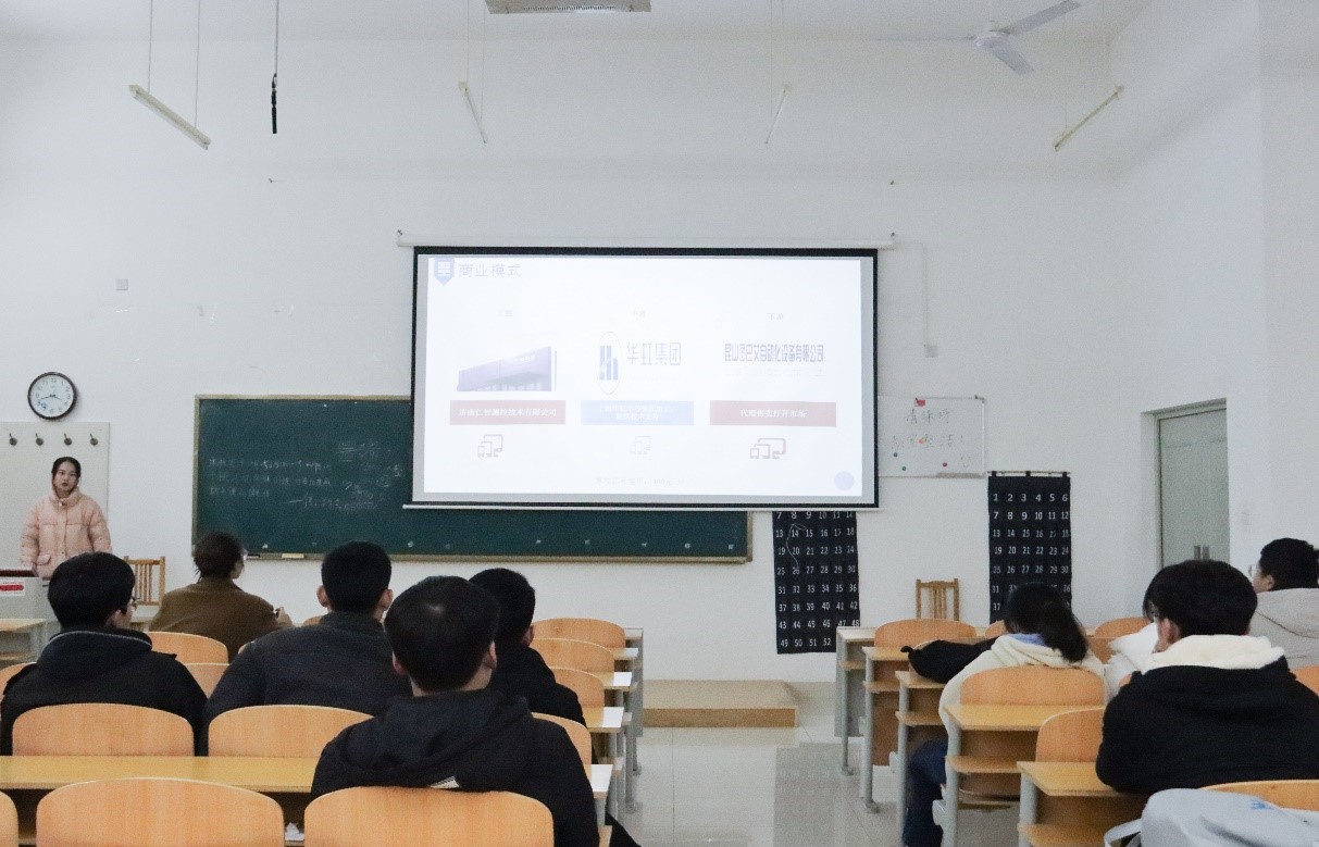 会议伊始,六组参赛成员依次上台,围绕行业背景、产品优势、技术壁垒、市场分析等方面,分别汇报了“数字中国——以技术引领的虚拟文博展馆”、“IM灵密科技——局域自组网智慧乡村应用引领者”、“寻忆——阿兹海默早筛领跑者”等六个项目。随后,学院2018级本科生、第十二届“挑战杯”省银奖项目负责人王亚茹作为评委,根据自身经验,从商业模式、财务预测、科研成果对参赛人员进行提问。