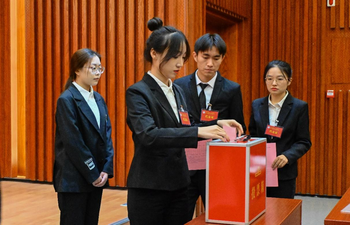 此后,大会审议并通过了《山东师范大学信息科学与工程学院学生会章程》、《山东师范大学信息科学与工程学院研究生会章程》、《山东师范大学信息科学与工程学院学生会工作报告的决议》、《山东师范大学信息科学与工程学院研究生会工作报告的决议》,大会选举办法,委员会、主席团候选人名单及监票人、计票人名单,并通过无记名投票选举出郭士耀等七人作为学生代表大会委员会成员,张本寰等三人作为学生代表大会主席团成员,曹喜玲等十一人作为研究生代表大会委员会成员,祝令凯等三人作为研究生代表大会主席团成员。