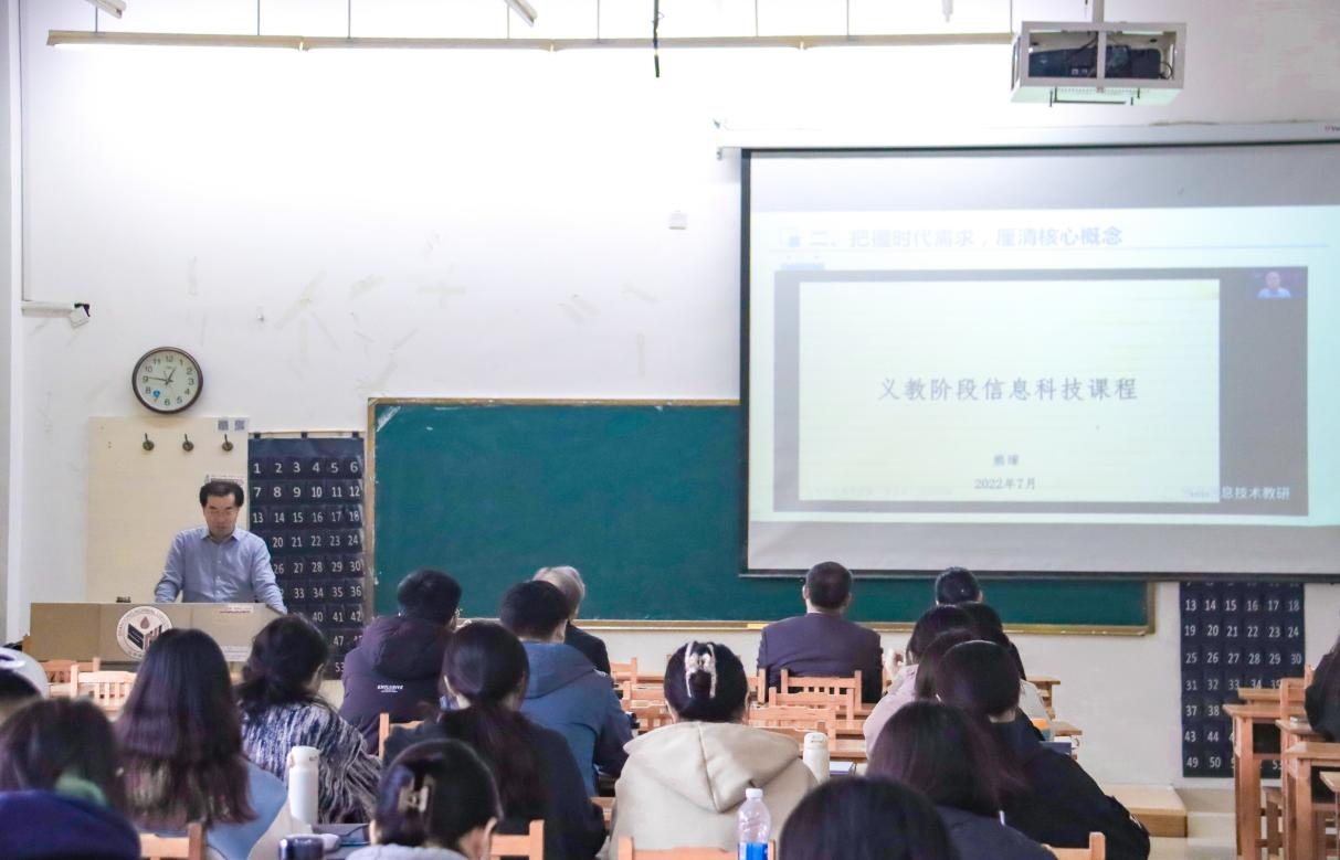 近日,信息科学与工程学院于长清湖校区文淙楼1-109教室成功开展“由编程学习到计算思维的培养”培训讲座。本次讲座特邀高级教师、青岛市教科院信息技术、信息科技(人工智能)教研员陆德旭担任主讲,2021级计算机科学与技术师范专业本科生参加讲座。讲座由学院副教授、硕士生导师解福主持。
