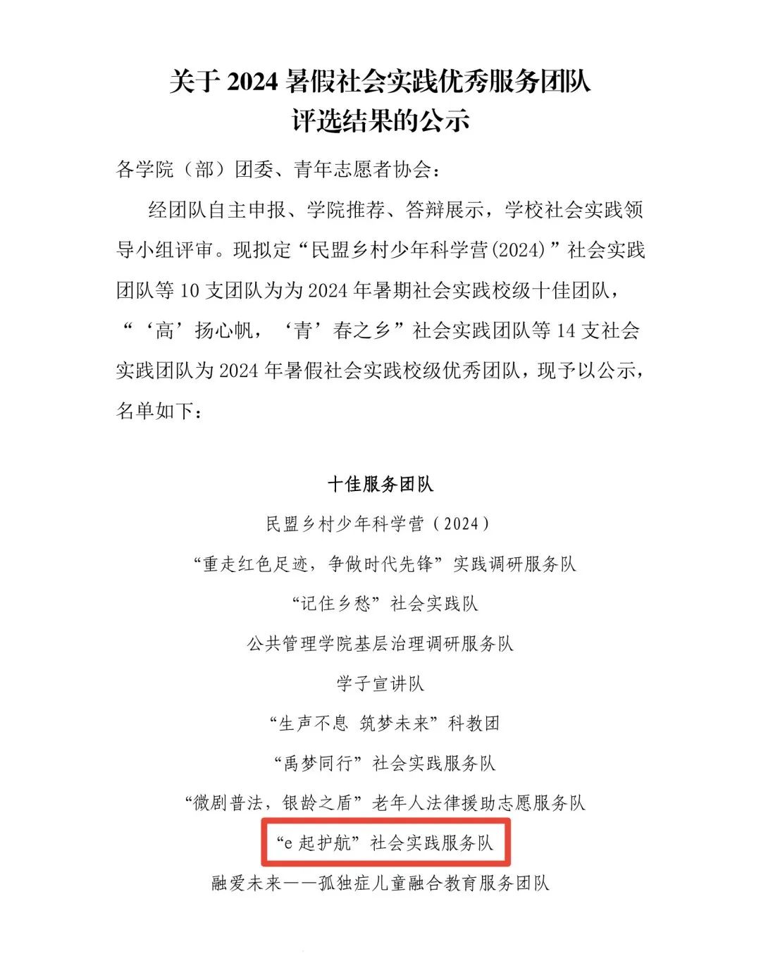 暑假期间,学院高度重视暑期社会实践工作,特组织6支社会实践重点服务队,由指导老师带队,分别面向不同主题开展实践活动。此次校级十佳团队的入选,既展示了学院学生的实践风采,体现了学生暑期实践活动丰富的优秀成果,也充分彰显了我院大学生社会实践的育人成效。今后学院将进一步加强对大学生寒暑期社会实践工作的重视程度,积极为同学们打造实践交流的平台,激励更多同学们参与到社会实践中来,实现自我提升和社会发展的双重价值。